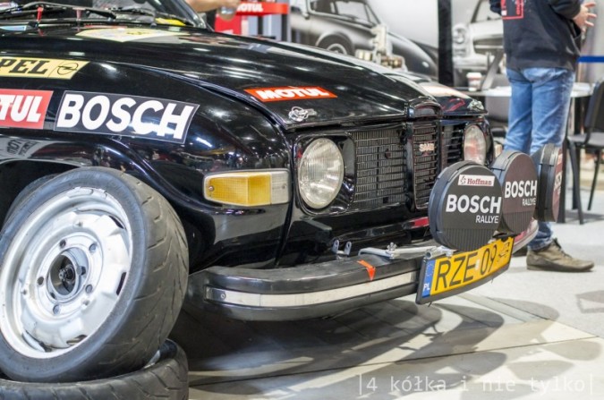 Drugie auto z tej kategorii to Nash Rambler. Typowe-nietypowe amerykańskie auto z lat 50. Typowe, bo z daleka widać, że to samochód zza wielkiej wody. Nietypowe, bo z zakrytymi nie tylko tylnymi, ale i przednimi kołami oraz z niezależnym zawieszeniem, czyli naprawdę nowoczesnym rozwiązaniem jak na tamte lata. Tuż obok stał równie ciekawy pojazd, choć już europejski i z innej epoki. Saab 96 V4 Rally, czyli sportowa wersja i to w dodatku aktywnie użytkowana w rajdach historycznych. Niestety stoisko nie eksponowało należycie moim zdaniem bardzo ciekawego i fajnego auta. Swoją drogą najlepiej na pewno zobaczyć je w ruchu, a nie stateczne na hali.