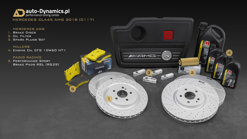 Mercedes Benz CLA45 AMG [117] | Code Name: Styks – Pakiet Serwisowy AD Klocki PAGID Tarcze AMG Olej MILLERS by auto-Dynamics.pl