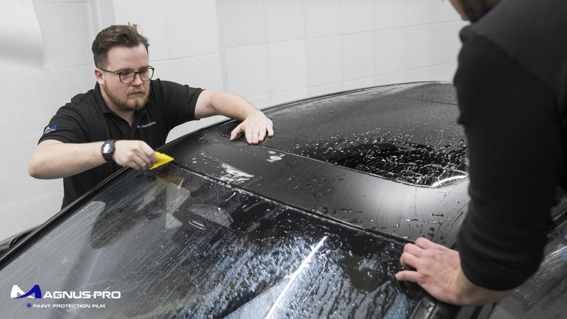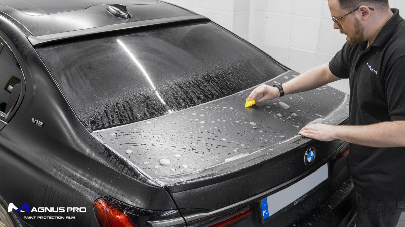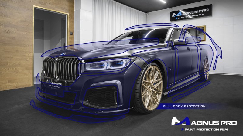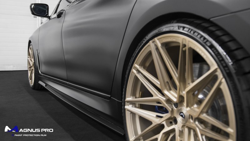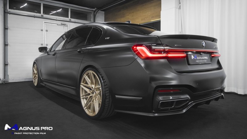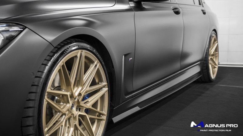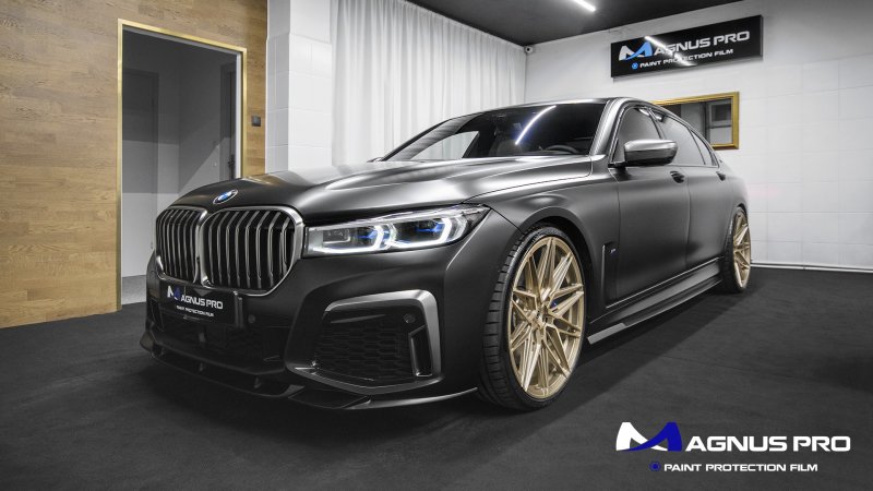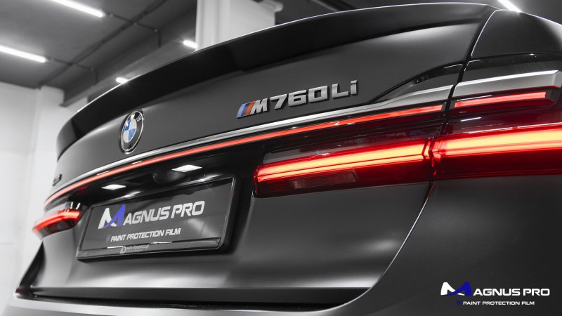 #FullBodyProtection | Wyposażony w dwunastocylindrową jednostkę napędową, flagowy „Luxusliner” z stajni BMW pod postacią M760Li [G12] w poliftowym wariancie, wykończony w pochodzącym z palety BMW Individual lakierze – Frozen Black z wizytą w naszym certyfikowanym studiu Magnus Pro celem absolutnie kompleksowego zabezpieczenia folią ochronną PPF. W przypadku tego egzemplarza, nasi autoryzowani instalatorzy sięgnęli po bezkompromisowy pakiet - aplikując matową odmianę folii Magnus Pro na całej karoserii pojazdu, zapewniając tym samym „Siódemce” całkowicie bezkonkurencyjną ochronę matowego lakieru. Ponadto tarcza ochronna w postaci naszej folii PPF zainstalowana została na wszystkie części nowego aero body kit’u zamontowanego przez auto-Dynamics.pl. W połączeniu z elementami wykończonymi w czarnym połysku oraz akcentami dekoracyjnymi, na które to zaaplikowana została tradycyjna folia ochronna PPF Magnus Pro, przyszłość codziennej eksploatacji odbywać się będzie w komforcie, bez obaw o jakiekolwiek odpryski i zarysowania lakieru. #TeamMagnusPro