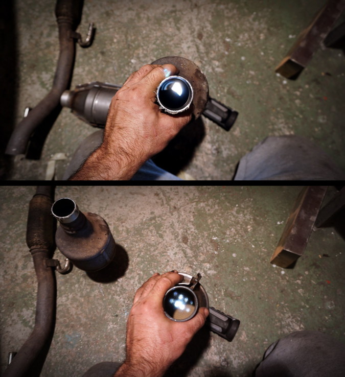 Co istotne – rura wydechowa w Ibizie ma średnicę 45mm. Nowy katalizator ma 48mm średnicy, dlatego do połączenia ich postanowiłem wykorzystać leżące gdzieś w kącie garażu łączniki jednostronne na 45mm.