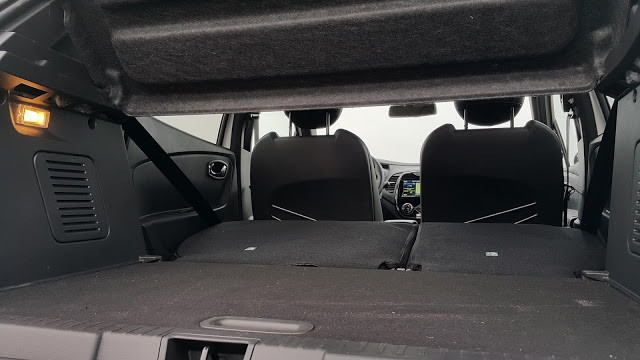 Pojemność bagażnika waha się od 377-455 litrów przy rozłożonych fotelach. Dlaczego się waha? Ponieważ całą kanapę dość łatwo można przesunąć do przodu, a potem do tyłu za pomocą rączki znajdującej się w bagażniku. Podłoga jest podwójna i gdy wyjmiemy lub położymy niżej półkę bagażnik staje się jeszcze głębszy. Na samym dnie, ale nadal na szczęście w bagażniku znajdziemy ekstra koło. Gdy półka jest na swoim miejscu to po złożeniu oparcia tylnej kanapy wciąż jest ona płaska.