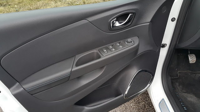 O ile na tylnych drzwiach podłokietnik to po prostu kawał twardego plastiku o tyle z przodu mamy już delikatnie uginający się materiał. Przednie fotele średnio wyprofilowane, ale umówmy się - pomimo tego, że jest to najszybsza wersja Renault Captur to ten crossover nie jest demonem prędkości. Nie mniej jednak trzymanie boczne występuje więc nie musimy się obawiać, że nasze cztery litery spadną z fotela na ostrzejszym zakręcie.