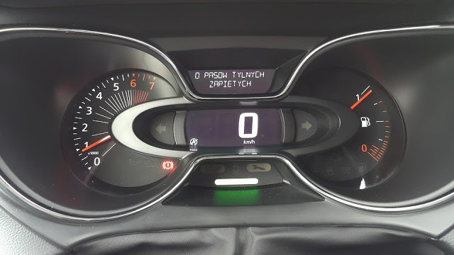 Zegary duże i czytelne. Wprawdzie analogowy jest tylko obrotomierz i ten od wskazań ilości w niewielkim 45-litrowym zbiorniku paliwa. Większy, umieszczony w centralnym punkcie wyświetlacz to elektroniczny prędkościomierz. Tuż nad nim mamy mniejszy wyświetlacz, który jest komputerem pokładowym z podstawowymi, standardowymi funkcjami jak średnia prędkość, średnie zużycie paliwa, dystans przejechanych i możliwych do przejechania kilometrów itd. Poniżej prędkościomierza ta zielona kreska którą widzicie informuje o naszej jeździe tj. gdy przemieszczamy się eko to kreska jest zielona. Gdy ciśniemy jest żółta. Taki tam gadżet dla ekomaniaków.