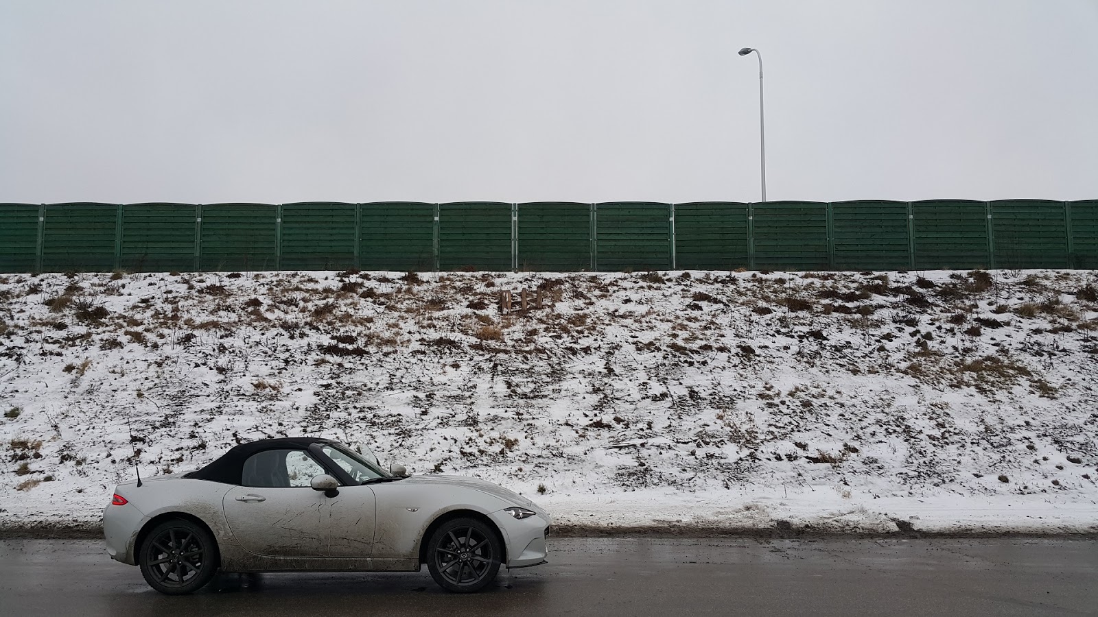 Dach składa się i rozkłada ręcznie, ale na cały zabieg potrzeba mniej więcej tyle czasu co na przeczytanie tego zdania. Z pewnością elektrycznie nie byłby w stanie otworzyć się tak szybko, a z drugiej strony mechanizmy potrzebne do jego otwarcia to byłyby kolejne zbędne kilogramy. Na zewnątrz dobrych kilka, nieraz kilkanaście stopni na minusie, ale dałem radę czyt. nie zmarzłem i wcale nie odczułem tego, że nad głową mam miękki dach.