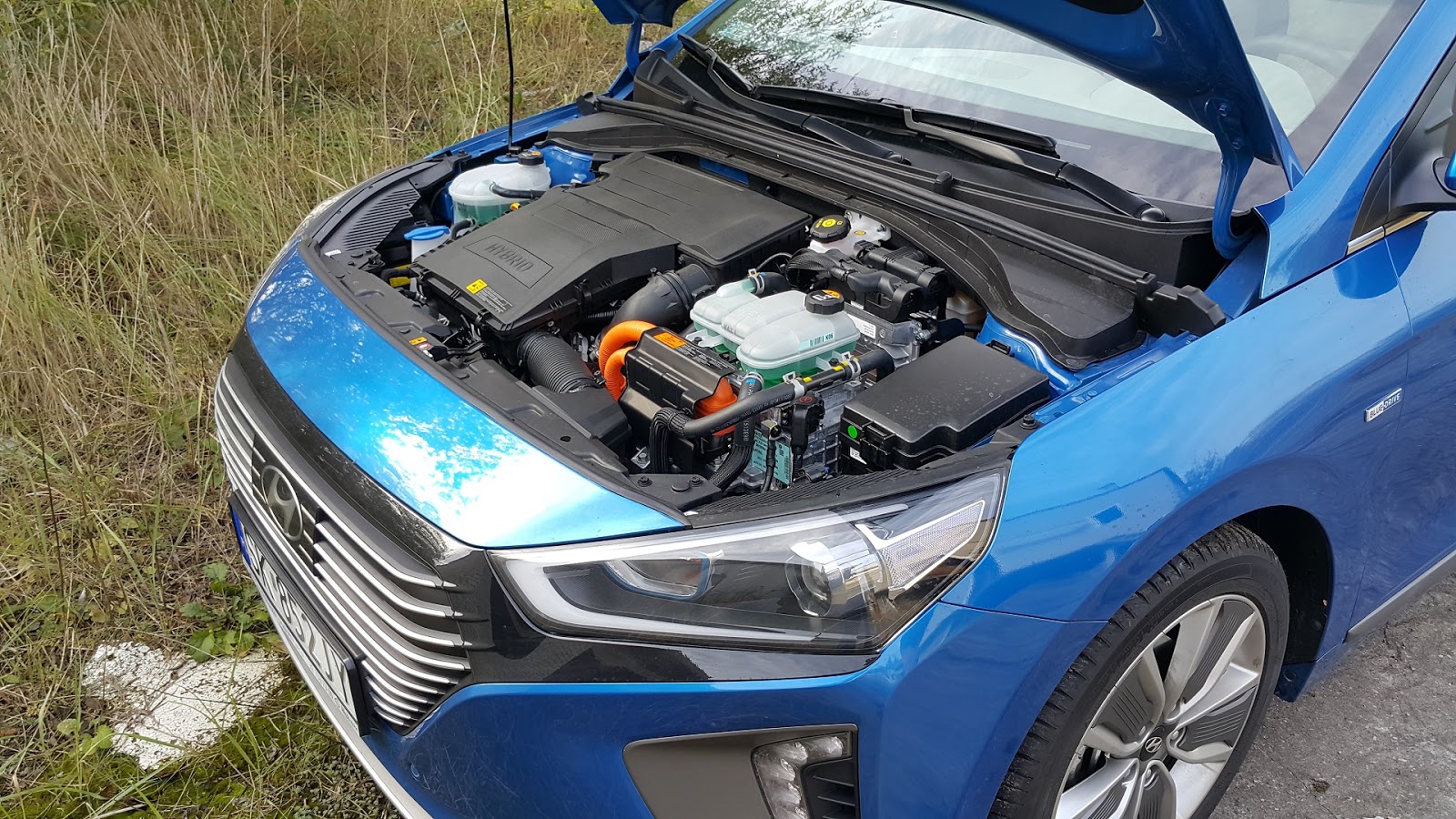 Sercem hybrydy są dwasilniki. Jeden z nich to spalinowy benzyniak o pojemności 1.6, 4 cylindrowiec generujący 105KM oraz 147Nm. Drugi, elektryczny (synchroniczny z magnesami stałymi) generuje 43,5KM oraz 170Nm. Łącznie daje nam to całkiem spory wynik. Ioniq posiada napęd na przednią oś. Ciekawostką jest tutaj także skrzynia - żaden tam bezstopniowy CVT, a dwusprzęgłowa automatyczna, sześciostopniowa DCT. Sprint do setki zajmuje 10,8 sekundy chociaż wydaje się jakby to było znacznie szybciej.Średnie spalanie przy takiej solidnej jeździe oscylowało w okolicach 5 litrów na 100km/h. Pojemność zbiornika paliwa to 45 litrów - wydaje się, że jest to niewiele, ale jeżeli będziemy jeździć eko to starczy na naprawdę spory dystans. Podczas jednostajnej prędkości moc jest dostarczana przez silnik elektryczny lub benzynowy w zależności od tego co w danej chwili jest bardziej efektywne. Hyundai w IONIQ`u zamontował akumulatory polimerowe, litowo-jonowe o wyższej gęstości, a zarazem wydajności.