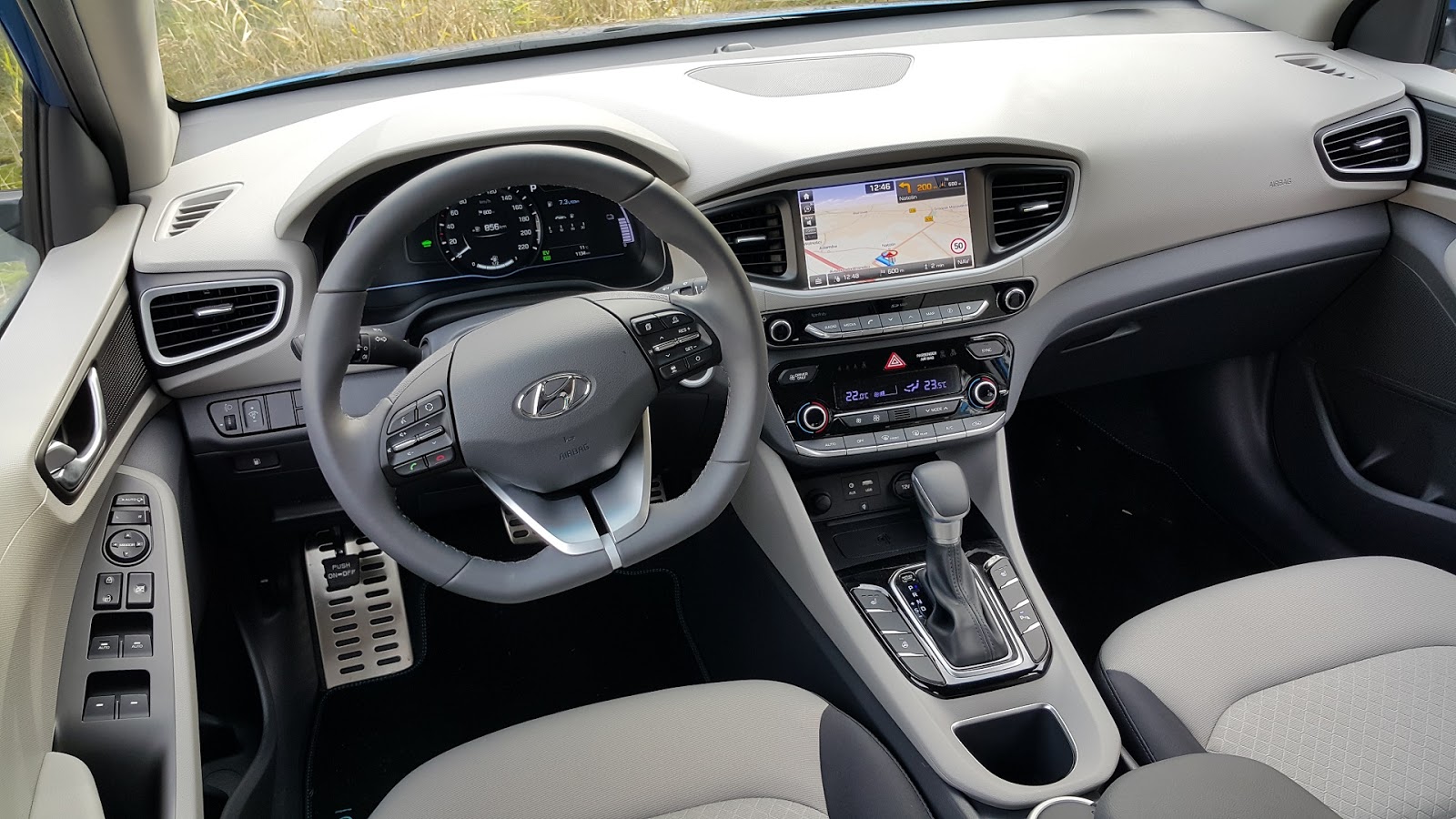 WnętrzeIONIQ`a jest wykonane z ekologicznych materiałów takich choćby jak pył wulkaniczny (plastikowe elementy). Tapicerka, która jest dość miła w dotyku i wygodna, gdzieś tam w swoim składzie posiada trzcinę - nie tylko ekolodzy są zadowoleni. Na pokładzie nie znajdziemy ostrych fajerwerków chociaż guzików i tak jest sporo - wszystko jednak dość ładnie poukładane tworząc elegancką spójną całość. Inne wnętrze jakie dotychczas można było spotkać w Hyundai`ju, ale to dobrze - inne auto od pozostałych modeli, więc niech się wyróżnia. Tu gdzie trzeba plastiki miłe w dotyku, delikatnie uginające się pod palcami. Na duży plus jest także spory wyświetlacz na konsoli środkowej.