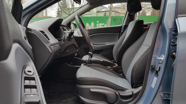 Poza prześwitem - albo mi się wydaje, albo też pozycja foteli jest nieco zmieniona w stosunku do zwykłego i20 przez co widoczność jest lepsza. Pozycja wygodniejsza, a suma sumarum bezpieczeństwo większe. Auto posiada 406,5cm długości x 176cm szerokości (bez lusterek) oraz 152,9cm wysokości. Przyznam szczerze, że biorąc pod uwagę ile miejsca jest dla pasażerów w środku to śmiem twierdzić, że to duże auto w swoim segmencie.