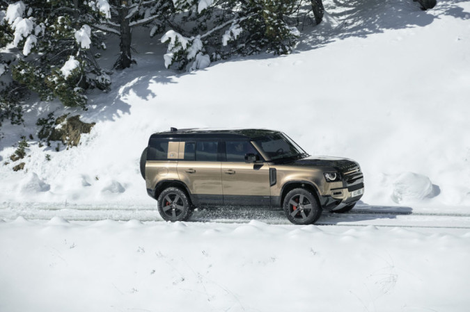 Znajdziemy tu LEDowe światła, klapę bagażnika otwieraną na bok i charakterystyczny dla tego segmentu, uchwyt na zapasowe koło z tyłu. Najbardziej charakterystycznym elementem pojazdu z pewnością są boczne szyby dachowe, oraz słupek od razu pod nimi. Do wyboru mamy wersję 3 drzwiową oznaczoną, jako 90 oraz 5 drzwiową, o oznaczeniu 110. W zależności od tego, w jakim środowisku chcemy głównie użytkować Defendera, mamy 4 pakiety akcesoriów. Dzięki dużej ilości dodatków można go w pełni skonfigurować do swoich potrzeb.