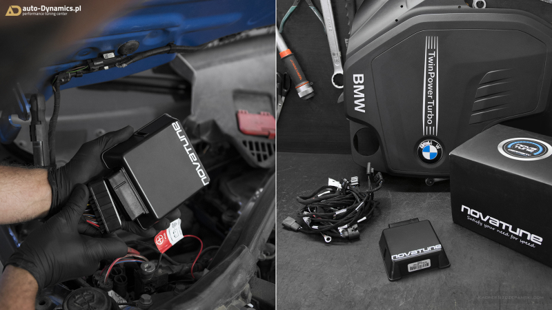 Modyfikacyjną trawestację bawarskiej 4-er rozpoczęliśmy od szeregu zmian mechanicznych mających istotny i realny wpływ na finalną eskalację osiągów. W pierwszej kolejności, fabryczny, bezbarwny dźwiękowo układ wydechowy zastąpiliśmy sportowym systemem od renomowanego, niemieckiego producenta – firmy Eisenmann. Tłumik końcowy w specyfikacji „Sport” [z homologacją TUV] zakończony czterema okrągłymi końcówkami w schemacie 4 x Ø 76 mm, które dodatkowo, własnym sumptem wylakierowaliśmy w kolorze czarnego półmatu. Tłumik Eisenmann naturalnie wyposażony jest w elektrozawór odpowiadający za głośność pracy a ów zaworem zawiaduje on-board'owy komputer BMW [tryb Eco i Comfort zawór zamknięty (tryb cichy) i tryb Sport i Sport+ zawór otwarty (tryb głośny)]. Eisenmann w całość projektu, prócz aspektów akustyczno-stylistycznych odpowiedzialny jest za maksymalizację przepustowości gazów spalinowych dzięki wewnętrznym, mniejszym restrykcjom kanistra tłumika. Konwersja układu wydechowego z systemu zakończonego podwójnymi końcówkami z lewej strony na podwójne końcówki na każdą ze stron wymaga zastąpienia, niekompatybilnej tylnej blendy na wariant aftermarketowy mieszczący a jednocześnie podkreślający przeprowadzoną metamorfozę. Finalnie, mało finezyjną blendę zastąpiliśmy dyfuzorem zderzaka tylnego niemieckiej firmy Rieger. Dyfuzor o agresywnie skreślonej linii w wykończonym przez producenta kolorze czarnego połysku idealnie współgra z końcówkami układu Eisenmann a jednocześnie stanowi stylistyczną, jednolitą fuzję z M-Pakietem i całym „Shadow Line” w szalenie koherentnym stylu. Kolejny „upgrade” BMW który przeprowadziliśmy to instalacja ultra-wydajnego intercooler’a frontowego. OEM’owy, skrajnie niewydajny podczas wysokich temperatur intercooler zastąpiliśmy efektywniejszym coolerem od renomowanego, niemieckiego tunera – firmy Wagner Tuning. Front mount intercooler [FMIC] z serii „Performance” tj. EVO 1 zapewnia dzięki swoim zwiększonym gabarytom, powierzchnie chłodzenia o 64% większą w stosunku do fabrycznego produktu co w konsekwencji pozwala oddawać zwiększoną moc w sposób niezachwianie stabilny, bez fluktuacji, nawet podczas ekstremalnie ciepłych dni tudzież okazjonalnych „track day’s”. Koncentrując działania nad dalszymi modyfikacjami przekładającymi się na „Performance” Gran Coupé, seryjny, niewydolny, papierowy filtr powietrza, odszedł w zapomnienie dzięki kompletnemu systemowi dolotowemu [Cold Air Intake] zaprojektowanemu i wykonanemu przez firmę Injen. Układ dolotowy Injen, prócz radykalno-ekstremalnej poprawie dawki doprowadzanego do komory spalania zimnego powietrza zapewnił także niebywałą wręcz akustykę [efekt dźwiękowy zasysanego powietrza jest po prostu powalający!]. Dodatkowo, dzięki przeprojektowanemu airbox’owi, układ Injen idealnie izoluje filtr powietrza od ciepłej komory silnika – co pozostaje również nie bez znaczenia w kryteriach wydajnościowych, przeprowadzonych przez auto-Dynamics.pl modyfikacji. Zwieńczeniem całego zakresu zmian mechanicznych, przy uwzględnieniu fabrycznej, rozszerzonej gwarancji BMW, a jednocześnie z uwzględnieniem zmian mechanicznych, stanowi montaż profesjonalnego, w pełni cyfrowego, dedykowanego, zewnętrznego komputera ECU wraz z specjalną, rozbudowaną wiązką elektroniczną komunikującą się z sensorami magistrali CAN. Kontroler od renomowanego, niemieckiego producenta - firmy Novatune. Zaawansowany ECU [Electronic Control Unit] zapewnia osiągi i bezpieczeństwo identyczne do typowego chiptuningu przez OBD. Moduł korzysta z map z dynamiczną adaptacją - monitoruje wiele wartości w czasie rzeczywistym i elastycznie dobiera wskazania. Komputer Novatune sięga po drzemiący w turbodoładowanej, dwulitrowej, zmodyfikowanej przez auto-Dynamics jednostce potencjał i przekuwa go na potężny przyrost mocy, momentu obrotowego jak również znacznie zwiększoną elastyczność. Właściwości nominalne / katalogowe przedstawione przez BMW to: 245KM i 350Nm. Efekty naszego zabiegu zmierzone na hamowni to 302KM i 420Nm [Przyrost: +57KM i +70Nm]. Wzrost parametrów na tym poziomie zapewnia absolutną bezawaryjność jednostki napędowej w połączeniu z rewelacyjnymi osiągami pozwalającymi na bezpieczne wyprzedzanie w każdych okolicznościach i warunkach drogowych, wyższa moc to również ogólny wzrost pewności na drodze. Różnica przyspieszenia w przedziale 100-200km/h jest absolutnie kolosalna. Odczucia z jazdy, w połączniu z napędem xDrive, są teraz naprawdę niesamowite, a elastyczność zdumiewa na każdym biegu!