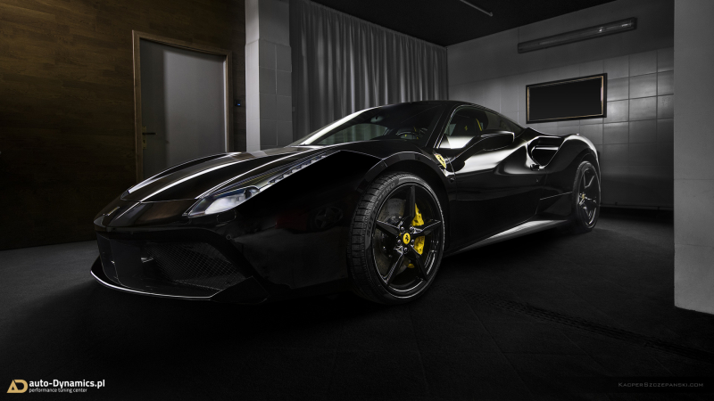 670-konny, niesztampowo dystynktywnie skonfigurowany - notabene w nieoczywistym dla pojazdów z Maranello, eminentnym czarnym kolorze, włoski ambasador klasy supercars pod postacią Ferrari 488 GTB [F142M] z wizytą w auto-Dynamics.pl celem przeprofilowania do warunków zimowych w fuzji z nutą stylistycznego indywidualizmu, koherentnie z wszechobejmującym, kompleksowym pakietem zabezpieczająco-ochronnym.