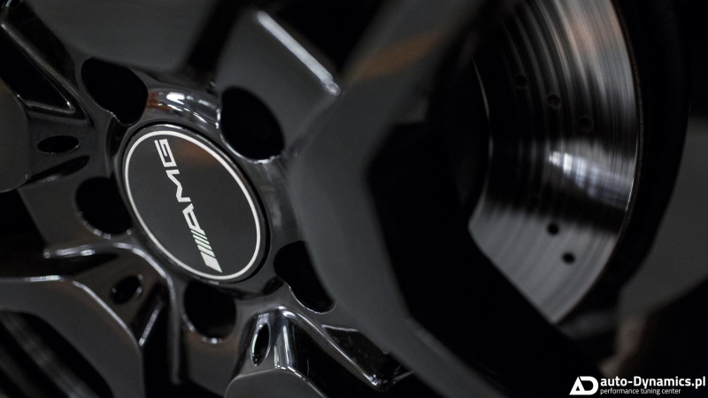 Kolejne modyfikacje przeprowadzone w Mercedes Benz CLS 350 CDI 4Matic to wymiana seryjnych felg w rozmiarze 18”. Wybór Klienta padł na oryginalne felgi w rozmiarze 19” z palety Mercedes AMG. Dostarczone do nas w kolorze srebrnym – metodą proszkową wylakierowaliśmy w spójnym z pozostałymi elementami – kolorze czarnego połysku. Naturalnie, zestaw felg uzupełniliśmy o komplet sportowego ogumienia firmy Michelin. Dodatkowo, celem poprawy właściwości wizualnych pojazd wyposażony został w zestaw profesjonalnych pierścieni dystansowych kół osi przedniej oraz tylnej wraz z dłuższymi śrubami – firmy H&R.