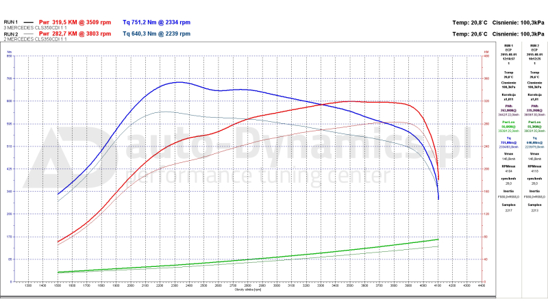 Finalna faza kończąca projekt to prace związane z przyrostem mocy i momentu obrotowego. Wyniki pomiaru seryjnych wartości na hamowni to 282KM i 640Nm [Wartości fabryczne podane przez Mercedes Benz to: 265KM i 620Nm]. W pojeździe zainstalowany został zaawansowany, cyfrowy moduł silnika z serii AD SporTronic® wraz z dedykowaną wiązką elektroniczną. Efekty zabiegu zmierzone na hamowni to 320KM i 750Nm. Przyrost wartości to +38KM i +110Nm.