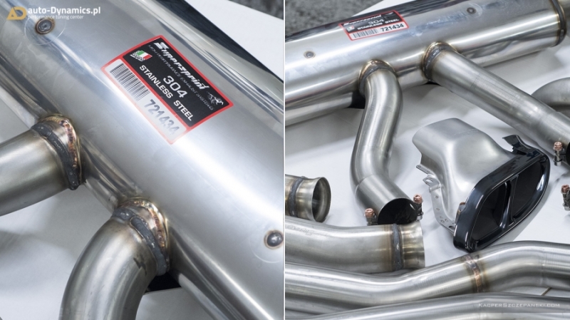 Koncentrując się na założeniach koncepcyjnych całego projektu, który miał na celu bezpieczne wyśrubowanie osiągów – w pierwszej kolejności przystąpiliśmy do typowej, wspomagającej modyfikacji typu „wdech + wydech”, poprawiającej przepustowość gazów spalinowych oraz doprowadzającej większą ilość powietrza do silnika. W GLE zainstalowany został zestaw wysokoprzeustowych, wieczystych filtrów powietrza firmy BMC - eliminujący mało wydajne, papierowe filtry oraz sportowy, doskonale brzmiący, maksymalizujący przepustowość spalin, wykonany z nierdzewnej stali kwasoodpornej, układ wydechowy typu „cat-back” firmy Supersprint. Specyfikacja systemu wydechowego to rezonowana [tłumiona] sekcja centralna oraz tłumik końcowy typu „Racing”. Takowa konfiguracja zapewnia eskalację dźwięków V6 przy jednoczesnym zachowaniu komfortu podczas codziennej eksploatacji. Realizując wizję Właściciela wykonaliśmy adaptację fabrycznych, pochodzących z wersji 43 AMG końcówek układu wydechowego wykończonych w kolorze czarnego połysk do nowego tłumika [oryginalny produkt Mercedes-Benz].