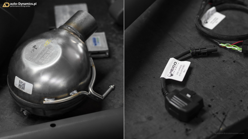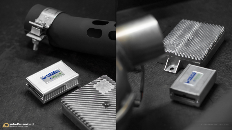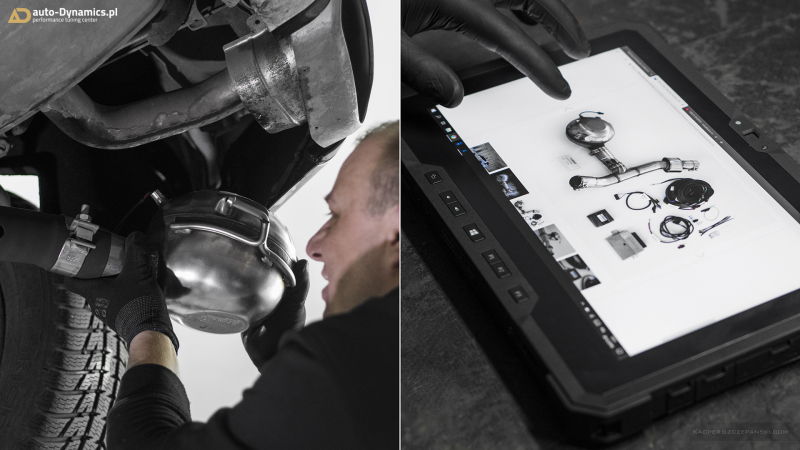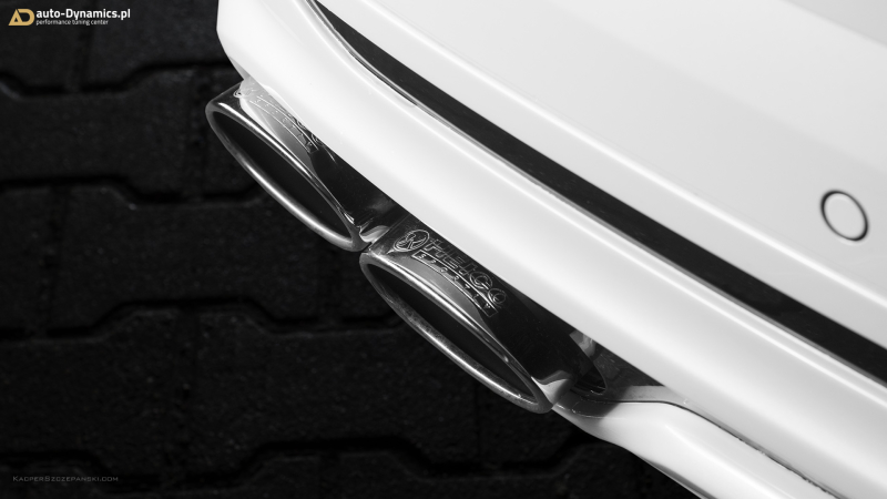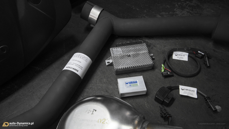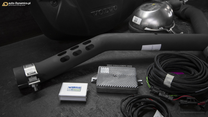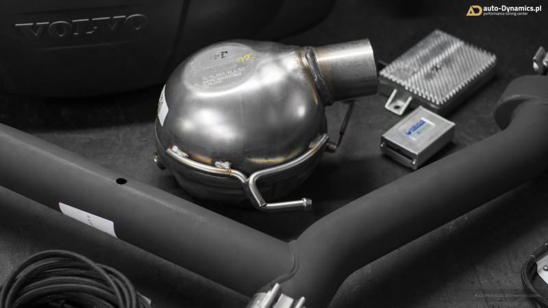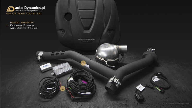 Następny stopień rozwoju projektu, to intensyfikacja prac związanych z diametralną poprawą akustyki w najnowszej generacji XC60. D5 wyposażyliśmy w sportowy układ wydechowy z zaimplementowanym systemem aktywnego dźwięku [Produkt firmy Heico Sportiv]. Zintegrowany system „Active Sound” zapewnia absolutnie radykalną poprawę brzmienia, której wysokoprężna jednostka napędowa nie jest w stanie z siebie samoistnie wydobyć. Generator akustyki o zabarwieniu dźwięku widlastej ósemki zintegrowany jest z magistralą CAN pojazdu za pomocą dedykowanej wiązki elektronicznej, zatem moduł w pełni adaptuje się do aktualnych obrotów i obciążenia silnika przy jednoczesnym uwzględnieniu wyboru trybu pracy pojazdu [Eco / Comfort / Dynamic]. Solucja „Active Sound” jest na tyle skuteczna w generowaniu naprawdę fajnego brzmienia, że o fabryczny montaż pokusiły się takie tuzy jak Maserati [Ghibli Diesel] czy Audi [w wersjach TDI]. Ponadto charakterystyczna, nowa akustyka idealnie wpisuje się w agresywną, zmodyfikowaną stylistykę tylnej części pojazdu.