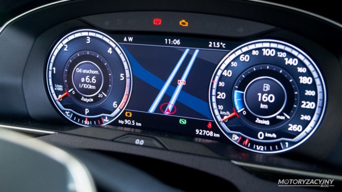 Zestaw multimedialny jest czytelny i prosty w obsłudze, a przy tym działa płynnie. Wystarczy kilkanaście minut, żeby zapoznać się z jego wszystkimi funkcjami. Testowany Passat wyposażony był dodatkowo w cyfrowe zegary. Bardzo mi się one spodobały. Są czytelne, ale przede wszystkim zachwyca mnogość informacji, jakie możemy na nich wyświetlać. Wszystkie systemy wspomagające kierowcę pracowały prawidłowo, nie wieszały się i pokazywały odpowiednie dane.