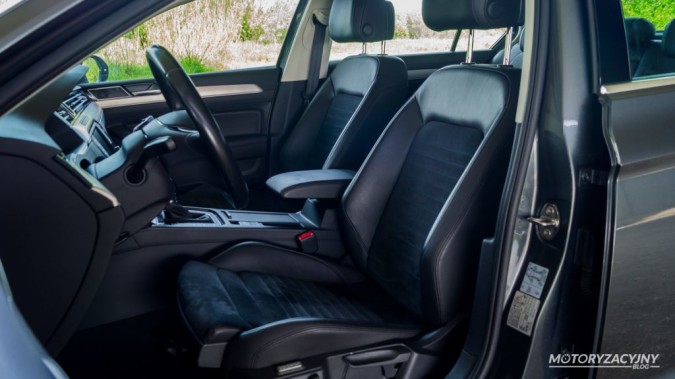 Czy komuś się podoba, czy nie Volkswagen Passat B8 stanowi wzór solidnego i dobrze wykończonego wnętrza w samochodach marek popularnych. Spasowanie całego wnętrza jest na bardzo wysokim poziomie, a plastiki są w znacznej większości miękkie. Każdy element wnętrza, który powinien mieć regulację, ma ją i to w takim zakresie, że dopasuje je sobie osoba o wzroście 1.5 m i 2 m. Mam tu na myśli nie tylko bardzo wygodne fotele, ale również kierownicę czy wyściełany flokiem podłokietnik w konsoli środkowej. Poza tym zarówno podłokietnik środkowy i ten na drzwiach są odpowiednio miękkie.