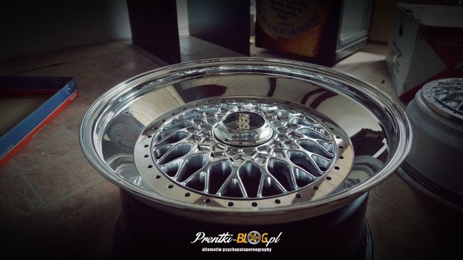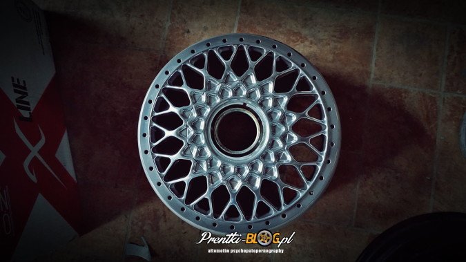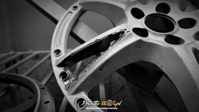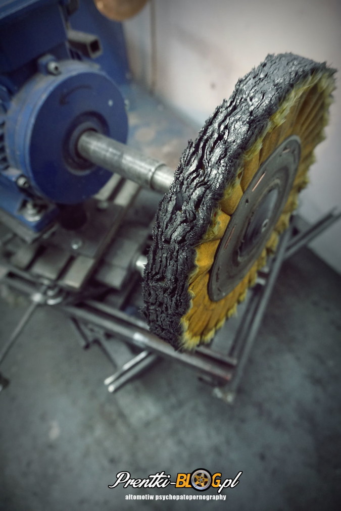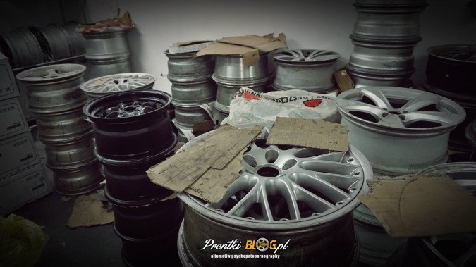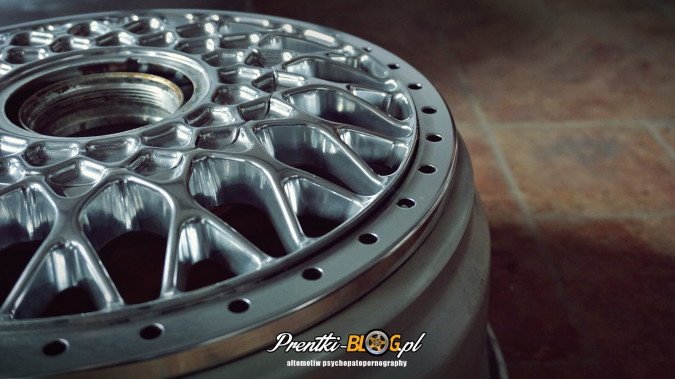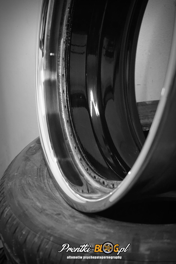 W sumie to trochę dołujące ale na miejscu okazało się, że przy felgach, które miał na warsztacie Lucjan, moje AZEV-y wyglądały jak ja wśród kandydatów na Mr Olympia. Chodzi o to, że oprócz takich „rutynowych” renowacji, chłopaki zajmują się też wieloma znacznie ciekawszymi rzeczami – polerują i wymieniają ranty, zmieniają konfiguracje felg, przetaczają i wymieniają gniazda, polerują wibracyjne całe koła – generalnie szaleństwo. To sprawia, że większość felg, które do nich trafiają jest droższa niż całe moje 328i razem wzięte.