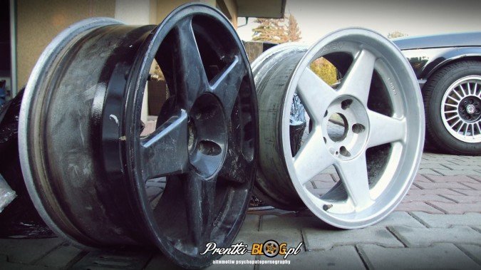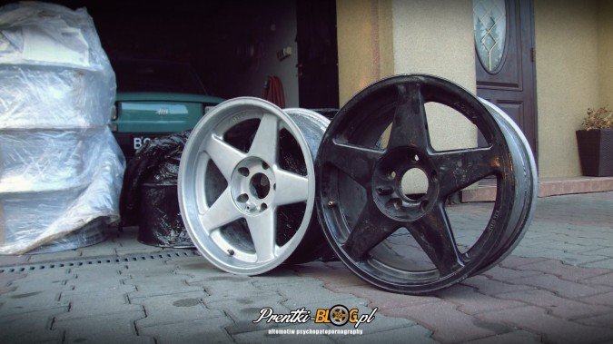 Wróćmy jednak na ziemię – w sumie żeby uzyskać zestaw w odpowiadającej mi konfiguracji (z szerszym tyłem), musiałem kupić dwa różne komplety. Zdecydowałem się na siedemnastocalowe koła o szerokości 8 cali (przód) i 8,5 cala (tył). Początkowo myślałem jeszcze wrzucić na tył felgi o szerokości 9,5 cala, ale żeby jakoś upchnąć to w nadkolach musiałbym naciągnąć na nie opony z roweru – odpuściłem więc bo niespecjalnie uśmiechała mi się wizja posiadania sportowego samochodu o właściwościach jezdnych motorynki.