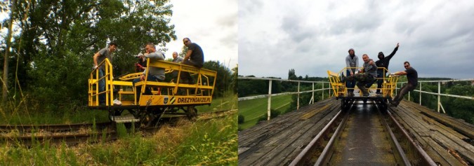 Jadąc drezyną podwieźliśmy recydywistę. Tak wyglądał. Taką możliwość podpowiadało też sąsiedztwo szarych ścian zakładu karnego w pobliskim Koronowie. Marek chciał ognia, on jak raz stał na moście przy torach i palił. Patrząc w dół myślał pewnie czy zacząć na nowo czy skończyć. Zabrał się z nami do następnego wiaduktu i tam wysiadł dziękując za przysługę.