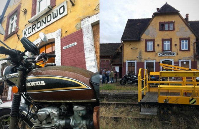 Zabudowania pochodzą z roku 1909 i sprawiają wrażenie jakby czas się zatrzymał. Z resztą tak było, ponieważ ruch kolejowy wstrzymano tam w roku 1992. Dziś stacja jest siedzibą miłośników kolei. Nasz Marek reprezentuje warszawskich Drezyniarzy, którzy akurat teraz w Koronowie trzymają swój sprzęt. Wszystko to sprawiło, iż mieliśmy czym ruszyć przed siebie opuszczonym szlakiem i czerpać od kogo nieskończoną ilość opowieści.
