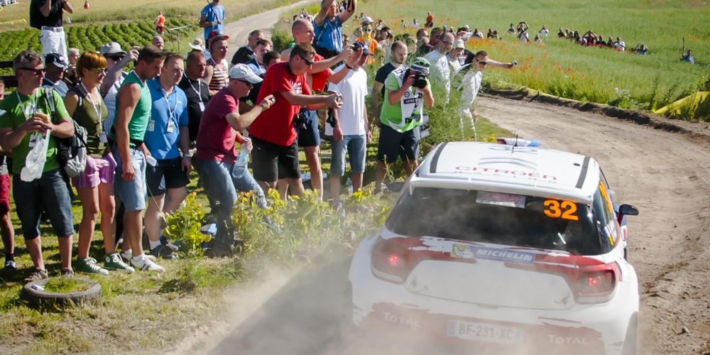 Po przejeździe czołówki ruszyliśmy na dalszy odcinek żeby zdążyć się dobrze ustawić. Przy okazji trafiliśmy na jadącego na kolejny OS Włocha Lorenzo Bertelli i próbowaliśmy za nim nadążać. Dopóki jechał po asfalcie to mi się udawało, potem jednak koleś zjechał na szutrówkę i tyle go widzieliśmy :) Po morderczej walce z ubitą przez spychacz gąsiennicowy mazurską drogą udało nam się dotrzeć na kolejny odcinek. Ale znowu okazało się, że improwizacja na rajdzie przynosi pecha ponieważ odcinek został odwołany, no masakra. A oczekaliśmy się w pełnym słońcu ze dwie godziny. Więc co nam zostało? Ruszać ze wszystkimi na następny odcinek i wierzyć, że uda się stanąć w fajnym miejscu i coś zobaczyć. Udało się ale nie byłem z tego dnia do końca zadowolony.