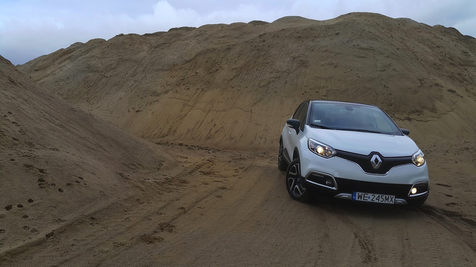 Pokonywanie wysokich krawężników i progów zwalniających to codzienna norma, zmora wielu kierowców. Zmorę można zlikwidować. Wystarczy wejść w posiadanie crossovera ze zdjęcia. Wysoki (17cm) prześwit pozwala bez trudu przetrwać w miejskiej dżungli, gdzie okazji do połamania zderzaka nie brakuje. Przód auta narysowany w ciekawy sposób. Na pierwszy rzut oka nie wygląda, ale gdy podejdziemy do auta bliżej to zobaczymy, że maska w pewnym momencie wręcz się urywa. Na środku gigantyczny logotyp marki Renault w wokół niego listwa w kolorze czarnego połysku. Na dole zderzaka światła przeciwmgielne oraz chromowane obwódki kratek. Niebieskie dodatki na obudowach lusterek oraz paski w tym samym kolorze na ciemnych dachu to folia, która nadaje uroku Captur`owi.