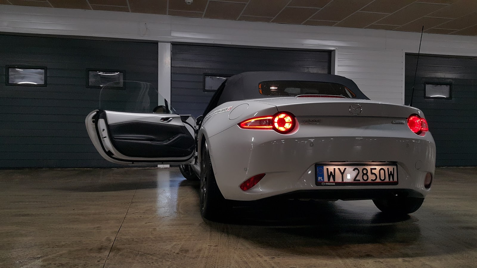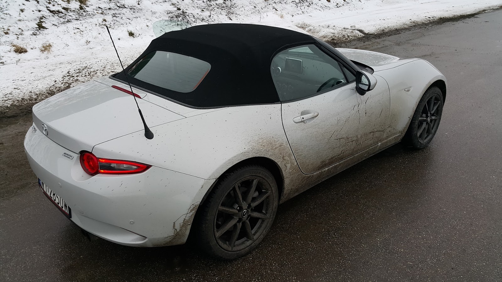 Wrażenia z jazdy. Mazda MX-5 to fabryka radosnych chwil i adrenaliny. Wystarczy nieco zredukować, docisnąć i łykamy każdy zakręt. Dość łatwo wpaść w poślizg ale także dość szybko można auto z niego wyprowadzić lub też prowadzić w poślizgu:) MX5 to bardzo zwinny pojazd i nie ma problemu z lawirowaniem między autami w korku czy na ciasnym osiedlowym parkingu. Najtańsza MX5, najuboższa i najsłabsza to wydatek w okolicach 90 tys złotych. Wersja silnikowa 2.0 zaczyna się od 104 tys. zł, a egzemplarz dokładnie taki jak mój testowy to okolice 116tysięcy oczywiście polskich złotych. Czy to dużo? Wystarczy przeanalizować rynek roadsterów i od razu zorientujemy się, że cena jest więcej niż atrakcyjna. Na pokładzie ,,zabrakło" tylko kamery cofania. Z zamkniętym dachem widoczność do tyłu nie jest rewelacyjna i jeżeli dla kogoś będzie to stanowić problem to musi z kieszeni wyciągnąć 2150zł by się tego ,,problemu" pozbyć.