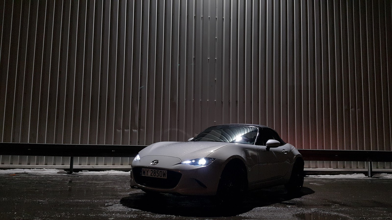 O ile poprzednie generacje MX5tki nie przekonywały mnie do siebie wyglądem o tyle aktualna ma w sobie to coś co odwraca na ulicy nie tylko głowę, ale całego mnie by podziwiać minimalistyczny, futurystyczne design od Mazdy. Minimalizm bo wszystko co niezbędne jest na aucie albo na pokładzie wewnątrz. Futurystyczny, bowiem wszelkie linie są nakreślone w ostry, zadziorny sposób. Z przodu niewielkie lampy, spory logotyp marki na środku zderzaka oraz ogromny jak na to auto wlot powietrza. Wygląd kwestia gustu, ale MX-5 to piękny roadster. Tu wszystko do siebie pasuje i jest w idealnych proporcjach. Nawet rozkład masy to 50:50.
