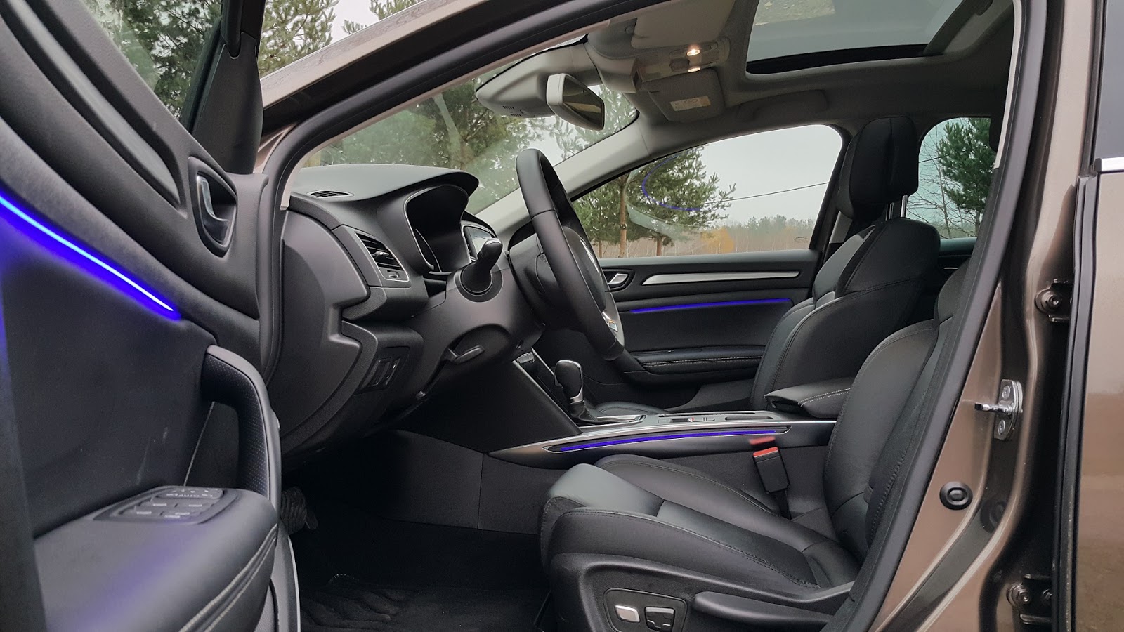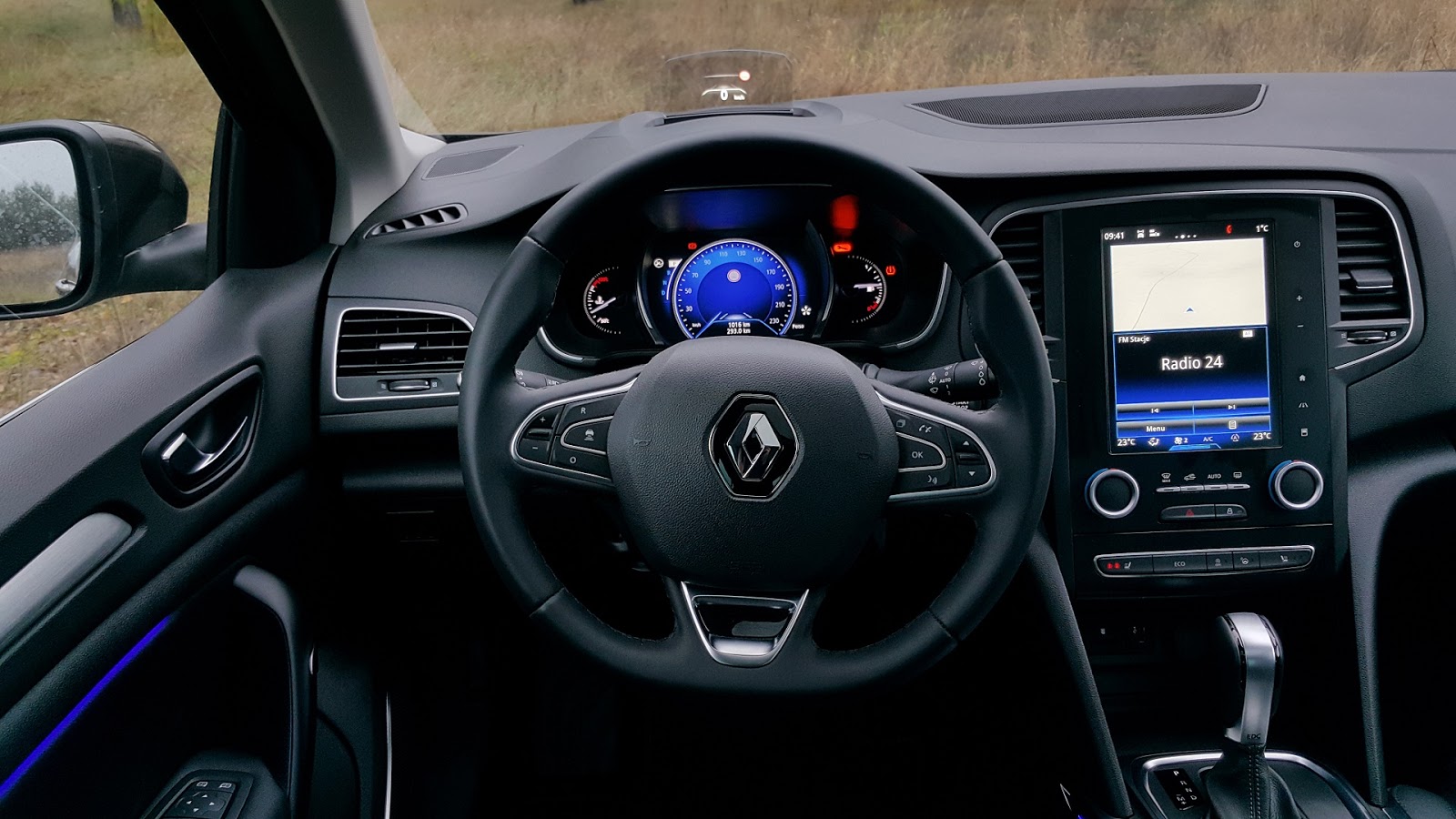 Kokpit bardzo nowoczesny, rzekłbym nawet klasyczny już jak na Renault. Sporo bajerów dostępnych pod przyciskami i jeszcze więcej poukrywanych w dużym środkowym wyświetlaczu. Krótko pisząc nowoczesny minimalizm. Cała deska rozdzielcza w szarej tonacji, więc wybrałem moje ulubione podświetlenie - kolor niebieski, który pasował do całej tapicerki oraz nielicznych chromowanych wstawek i nakładek.