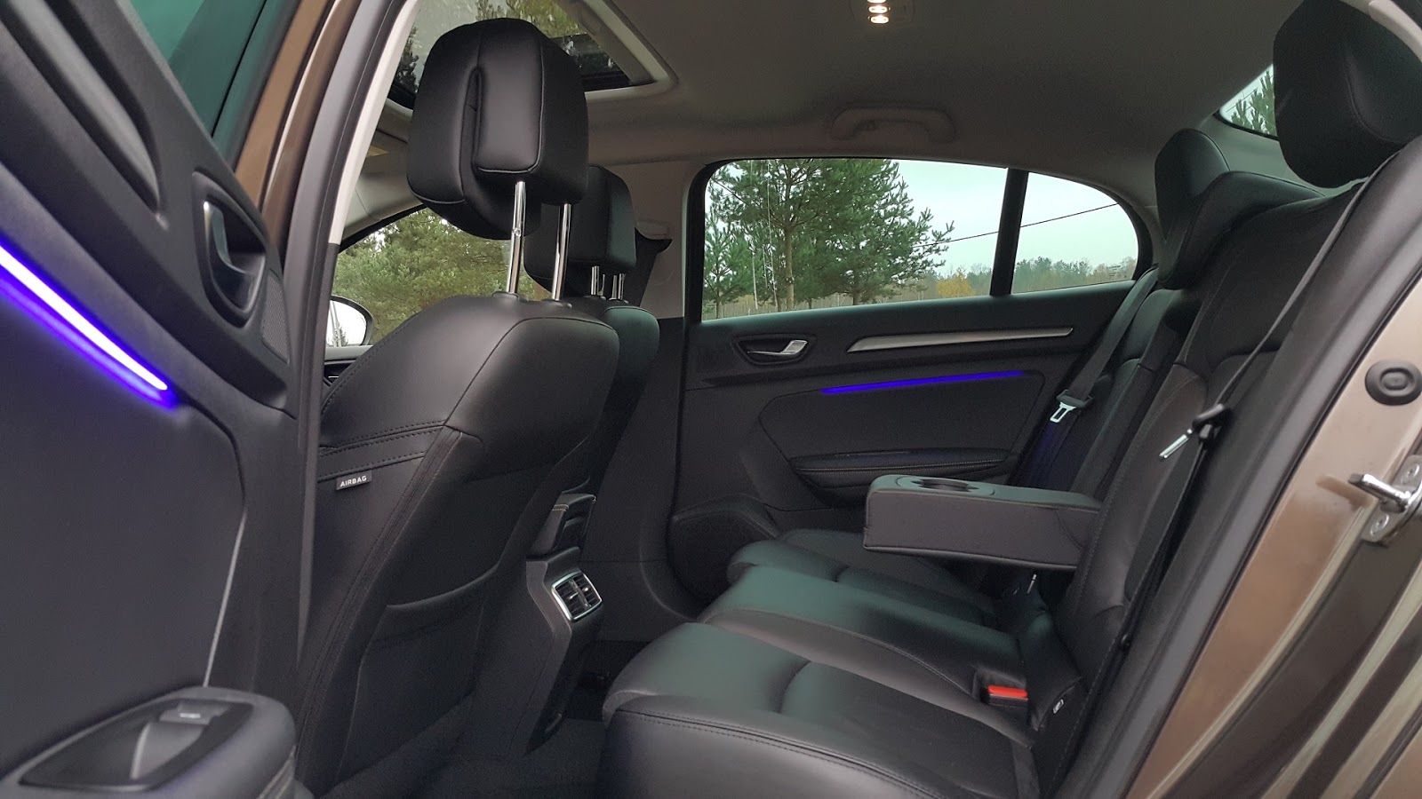 Tyłek równie ciekawy co pozostałe strony Megane Grand Coupe. Charakterystyczny, kolejny element marki Renault to spotykające się niemalże na środku tylne lampy, które rozdziela jedynie logotyp marki z kamerą cofania w środku. Dość duży jest jak na tego typu auto rozstaw osi, który wynosi dokładnie 2,71m i sprawia, że auto wygląda jak długa limuzyna, a przecież to ,,zwykła”, ale nowa Meganka.