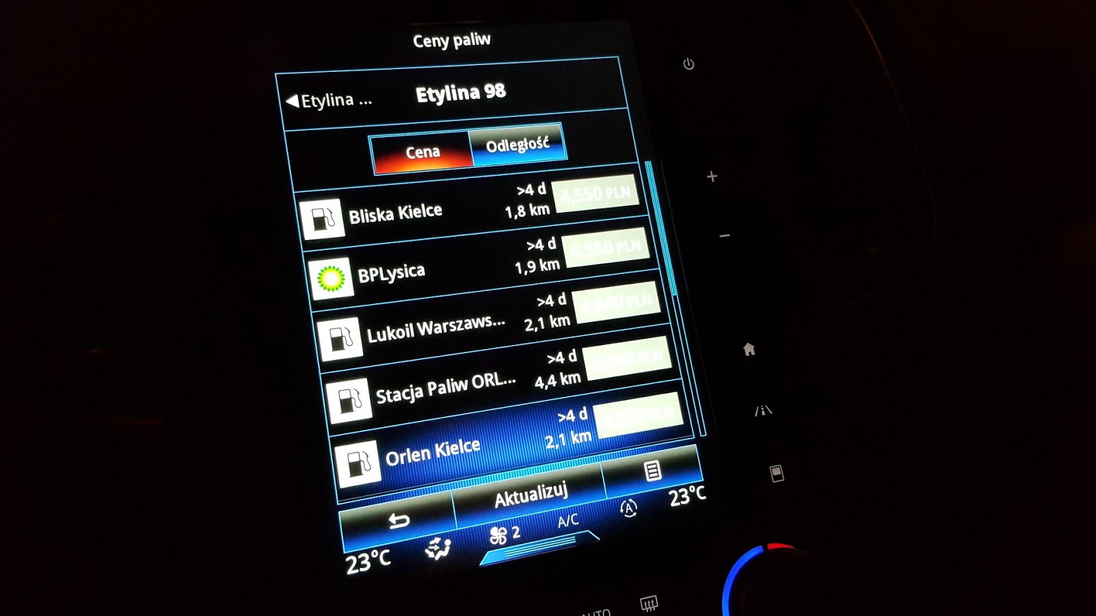 Kolejnym udogodnieniem jest cennik paliw na pobliskich stacjach, więc jeżeli ktoś ciągle szuka gdzie jest najtaniej w danej chwili to ma troszkę łatwiej.