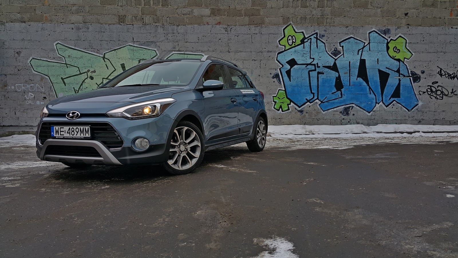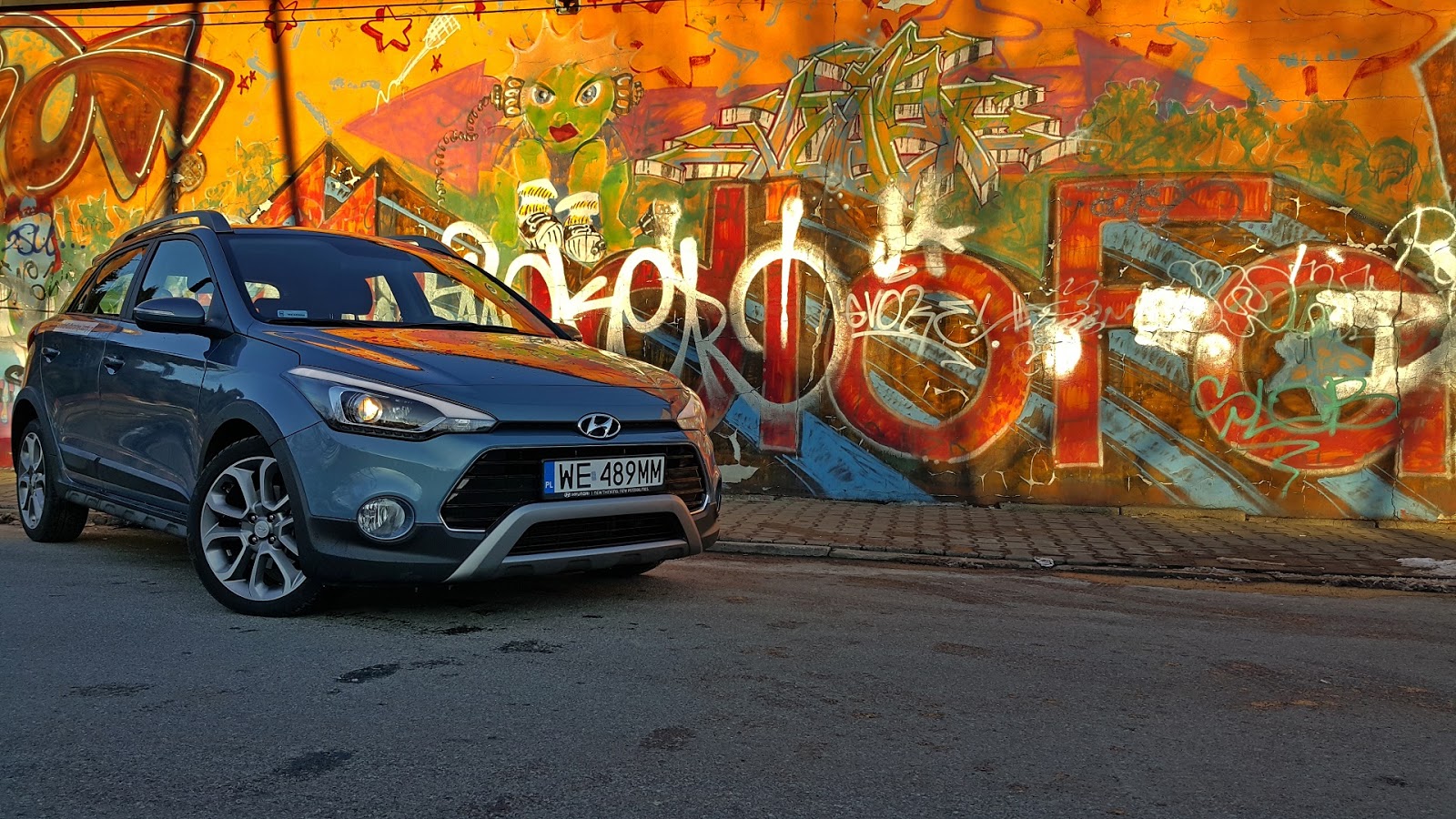 Pierwsze co się rzuca w oczy to jak zawsze felgi i kolor nadwozia - obie te rzeczy w testówce prezentowały się więcej niż tylko przyzwoicie. Przy nadkolach mamy plastikowe nakładki, które optycznie dość mocno to małe auto powiększają. Przedni oraz tylny zderzak także delikatnie jest zmieniony w stosunku do zwykłego Hyundai`ja i20. Generalnie bryła auta należy raczej do kategorii ,,atrakcyjne".