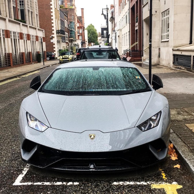 Patrząc na Huracana można się zakochać i ja tak właśnie zrobiłem. Z przodu rzuca się w oczy agresywne spojrzenie za sprawą świateł w kształcie dwóch liter Y oraz masywność pojazdu dzięki poszerzonemu nadwoziu. Maska opada gwałtownie i zdecydowanie ku zderzakowi z wlotem powietrza na całej jego szerokości. Inaczej niż w przypadku Aventadora, nie ma tu wielu żłobień na masce oraz wielkiego splittera.